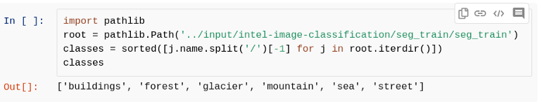 train_ds = ImageFolder('../input/intel-image-classification/seg_train/seg_train', transform=transform_train) test_ds = ImageFolder('../input/intel-image-classification/seg_test/seg_test', transform=transform_test) pred_ds = ImageFolder('/kaggle/input/intel-image-classification/seg_pred/', transform=transform_test)