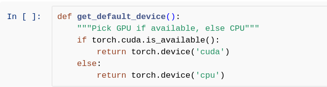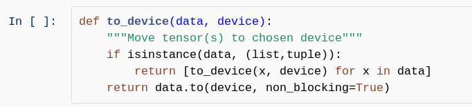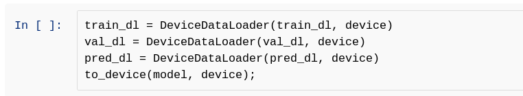 batch_size=128 train_dl = DataLoader(train_ds, batch_size, shuffle=True, num_workers=4, pin_memory=True) val_dl = DataLoader(test_ds, batch_size, num_workers=4, pin_memory=True) pred_dl = DataLoader(pred_ds, batch_size, num_workers=4, pin_memory=True)