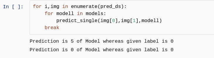 def predict_single(input,label, model): input = to_device(input,device) inputs = input.unsqueeze(0) # unsqueeze the input i.e. add an additonal dimension predictions = model(inputs) prediction = predictions[0].detach().cpu() print(f"Prediction is {np.argmax(prediction)} of Model whereas given label is {label}")