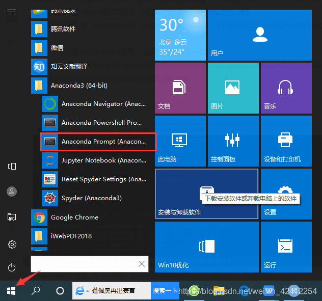 1.打开开始菜单->Anaconda3->Anaconda Prompt,打开Anaconda Prompt控制台
