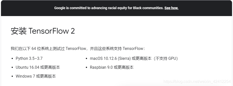 TensorFlow 有cpu和 gpu两个版本,gpu版本需要NVIDIA显卡的支持并下载CUDA 和 cuDNN ,对于初学者我们使用cpu版本即可(这里,仅介绍cpu版本的安装)