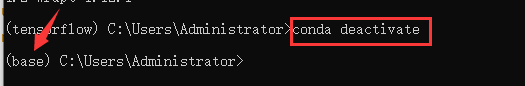 可以发现,除了基础环境base外,我们还可以看到刚刚创建的名为tensorflow的环境