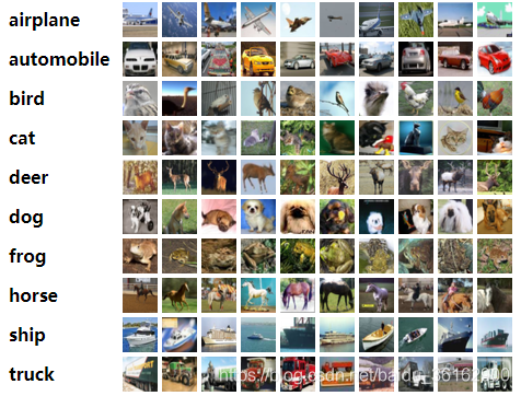 该数据集共有60000张彩色图像,这些图像是32*32,分为10个类,每类6000张图。这里面有50000张用于训练,构成了5个训练批,每一批10000张图;另外10000用于测试,单独构成一批。测试批的数据里,取自10类中的每一类,每一类随机取1000张。抽剩下的就随机排列组成了训练批。注意一个训练批中的各类图像并不一定数量相同,总的来看训练批,每一类都有5000张图。