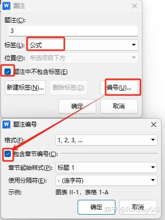 2.2点击编号,可以设置包含章节标题。即按章节编号。