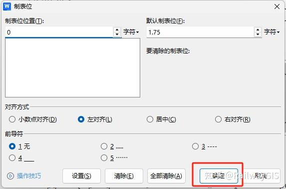 3.1设置左对齐制表位,字符0,点确定