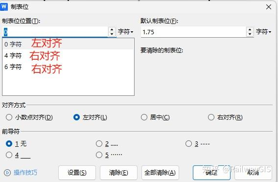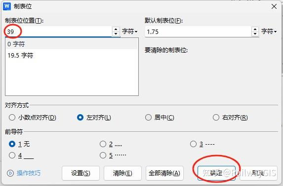 3.3按图3-1所示操作再次进入制表位设置界面,设置右对齐制表位,字符39,然后点确定