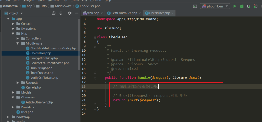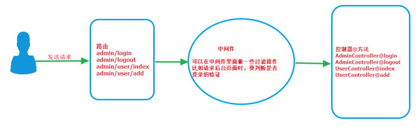在laravel中通过中间件来进行后台用户是否登录的验证操作,防止后台用户FQ操作。