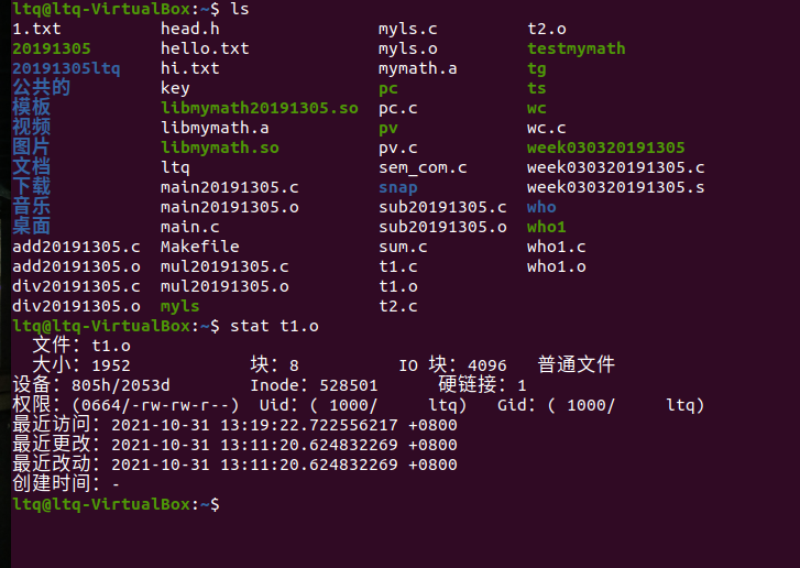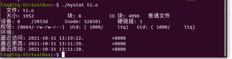 5. 测试代码,mystat 与stat(1)对比,提交截图