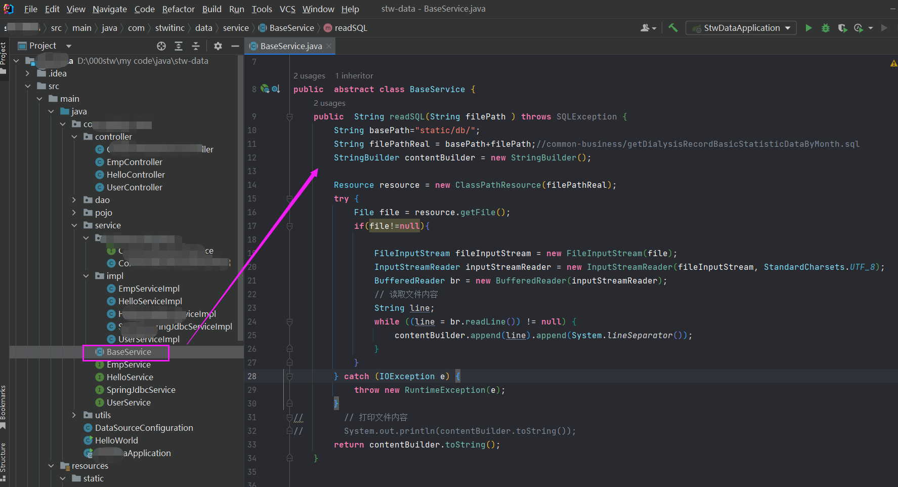 在复杂查询、统计等应用场景,直接写 sql 并执行是一种高效的方法。此文记录工作中解决的将查询统计sql直接写在文件中,代码中读取相应的文件即可获得要执行的 sql。