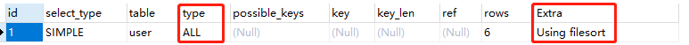 All全表扫描,效率最差,Extra:useing filesort 内部排序,很消耗内存。