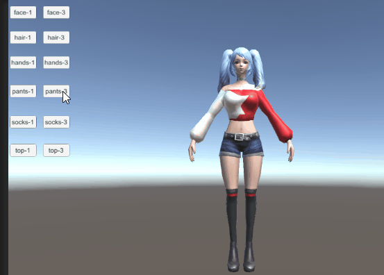 //第二参数是所有mesh上组件SkinnedMeshRenderer集合 private GameObject CreatPerson (GameObject root , List<SkinnedMeshRenderer> skinneds) { List<CombineInstance> combineInstances = new List<CombineInstance> (); List<Material> materials = new List<Material> (); List<Transform> bones = new List<Transform> (); Transform[] transforms = root.GetComponents<Transform> (); foreach(SkinnedMeshRenderer smr in skinneds) { materials.AddRange (smr.sharedMaterials); bones.AddRange(smr.bones); for(int sub = 0; sub < smr.sharedMesh.subMeshCount; sub++) { CombineInstance ci = new CombineInstance (); Mesh mesh1 = new Mesh(); smr.BakeMesh(mesh1); mesh1.uv = smr.sharedMesh.uv; ci.mesh = mesh1; ci.subMeshIndex = sub; combineInstances.Add (ci); } } SkinnedMeshRenderer r = root.AddComponent<SkinnedMeshRenderer> (); Mesh mesh = new Mesh (); mesh.CombineMeshes(combineInstances.ToArray(), false, false); r.sharedMesh = mesh; r.bones = bones.ToArray (); r.materials = materials.ToArray (); r.rootBone = root.transform; return root; }源码下载
