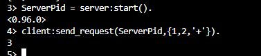 得到一个进程PId, 向其发送{self(),1,2,'+'} (self()表示本进程Pid,当前为shell本身):