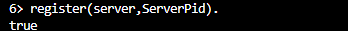 resiter(server,ServerPid), 将SesrverPid进程注册为server名的进程,成功注册返回true,其他返回错误信息