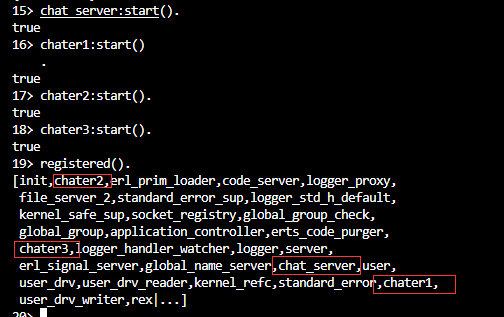 注册这四个进程,命名为chat_server,chater1,chater2,chater3,