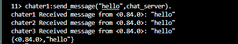 server能接收:{From,ToList,Msg} -> 向ToList发送Msg,{From,Msg} -> 向chater1,chat2,chat3 发送{From,Msg}.