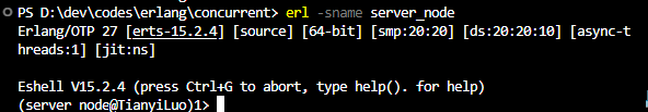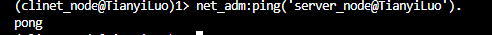 net_adm:ping('server@TianyiLuo'). 该节点通过节点名链接另一个节点,使双方处于互相连通状态
