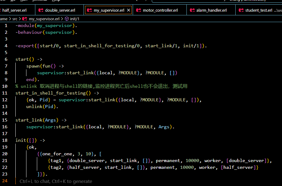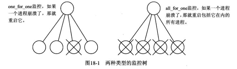 - 创建一个one-for-one 监控树程序监控这两个程序,