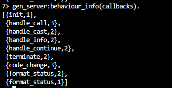 需要用到三种行为,查看模块要求的行为(必须实现的函数) M:behaviour_info(callbacks).