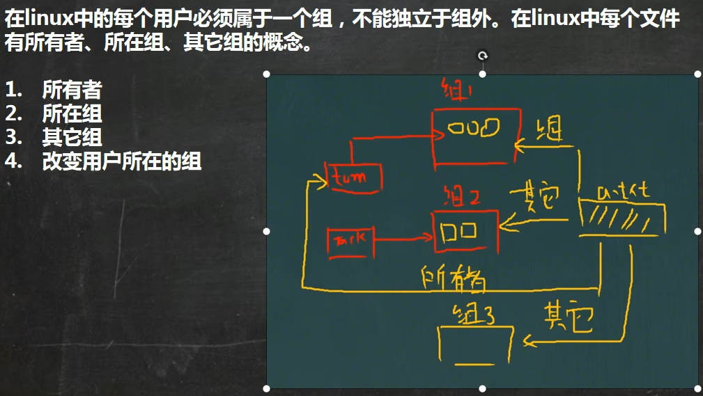 其他组:除了文件所有者和所在组的用户,其他用户和组都是文件的其他组