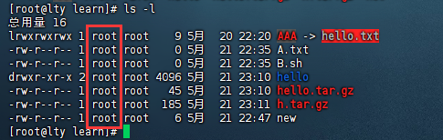- ls -l 查看目录下文件所有者