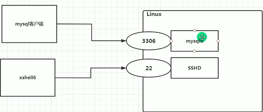 mysqld服务:3306端口数据库连接,SSHD服务:22端口shell连接