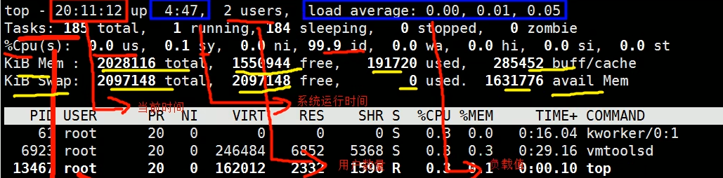 - top [-d time -i -p pid]:动态显示当前进程