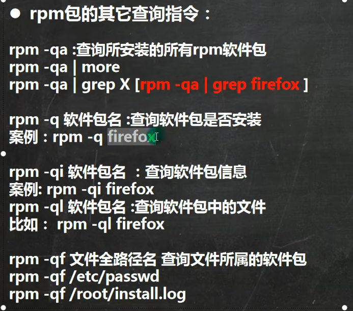- rpm -qa|grep xxx:查询已安装rpm列表