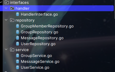 新建internal/interfaces文件夹,将ws的handler、service、repository提取接口: