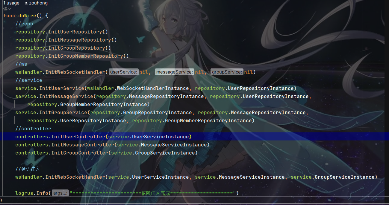 写着写着发现ws包依赖service包,service包又依赖ws包导致循环依赖,查网给出的解决方案是使用接口包分离依赖,各自只依赖接口而不是具体结构体,具体做法如下: