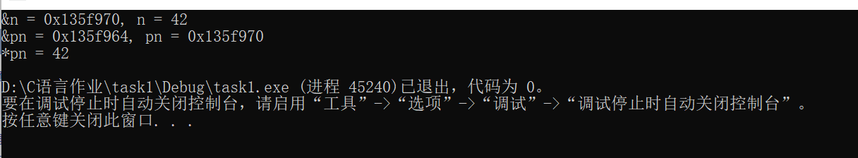 ① 整型变量n的地址是0x135f970 变量n里存放的数是42