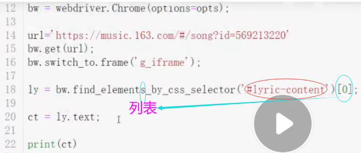 ly = bw.find_elements_by_css_selector('#lyric-content')[0];
