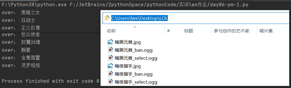 课堂练习:#爬取LOL的内容-爬取lol英雄的头像、BP的音乐。