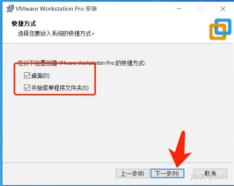 为了日后更便捷地启动 VMware Workstation Pro 17.5.2,建议勾选创建桌面快捷方式、开始菜单快捷方式等选项,方便您在桌面或开始菜单中快速找到并打开软件,设置完毕再次点击 “下一步”。