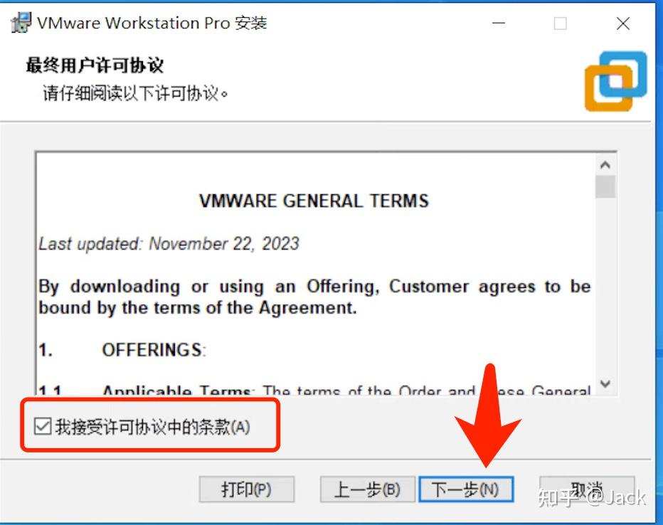 仔细阅读许可协议内容,若您同意其中条款,勾选 “我接受…” 选项框,随后点击 “下一步”,继续安装流程。