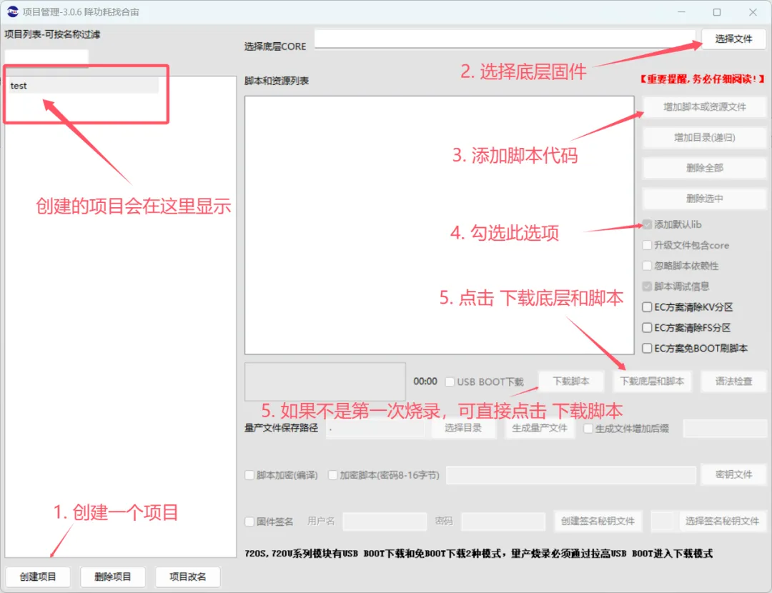 此时就需要大家先点击 Luatools 工具上的 下载底层与脚本/下载脚本,再执行下方操作了。