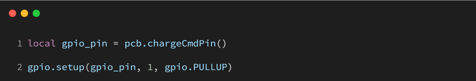 通过 gpio.setup 配置了两个引脚:一个用于监测充电状态,另一个用于电源键的回调。