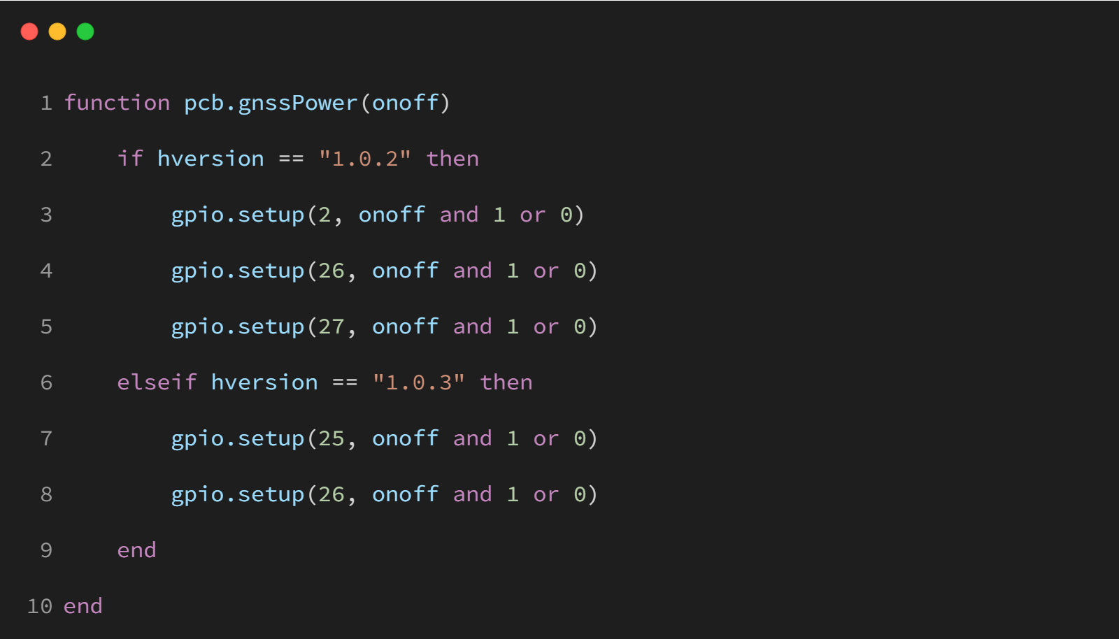 此函数根据硬件版本控制 GNSS 模块的电源状态。通过 GPIO 接口进行电源的开启或关闭。
