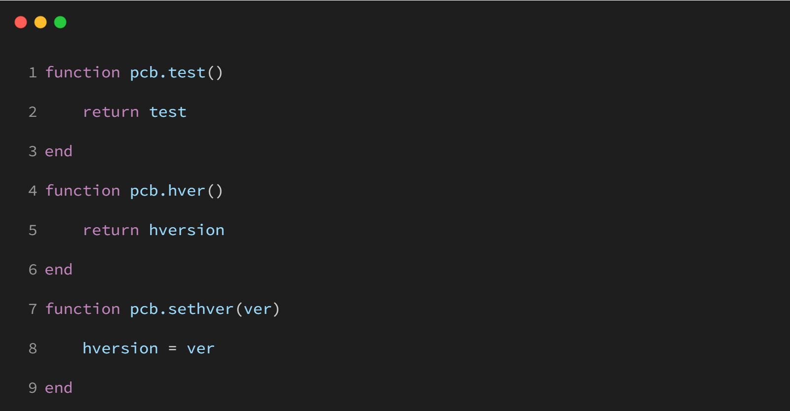 这段 Lua 代码定义了一个名为 pcb 的模块,其主要功能是管理和操作硬件的某些特性,特别是与 PCB(印刷电路板)相关的设置和状态。
