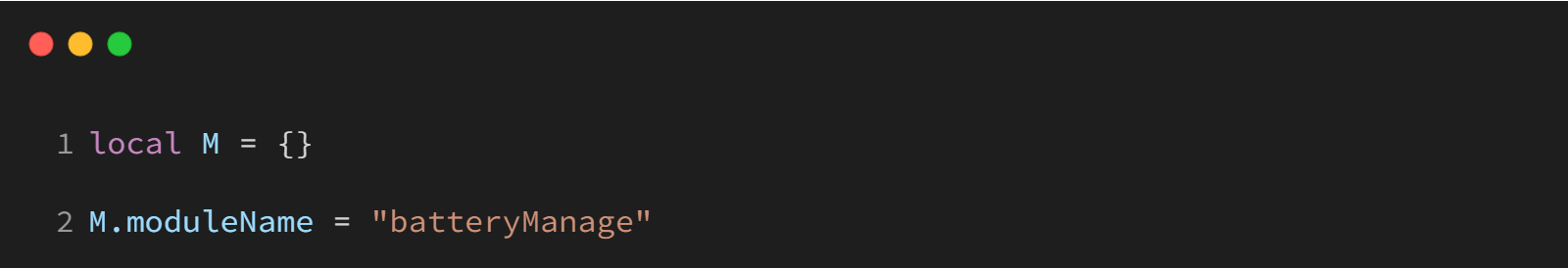 创建一个名为 M 的模块,定义模块名称为“batteryManage”。