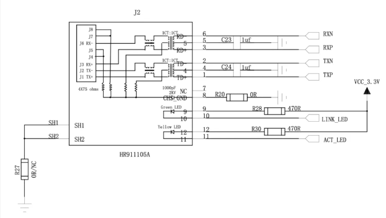 二、以太网RJ45电路参考设计