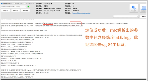 定位成功后,rmc解析出的参数中包含经纬度lat和Ing,此经纬度是wg-84坐标系。