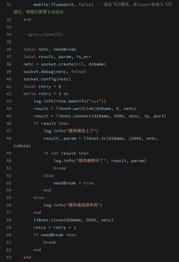 mian.lua中打开低功耗模式,屏蔽另外两种模式,如下图示: