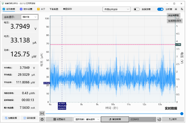 下图为链接好服务器后什么都不做的功耗,其中平均电流为6.2127mA。