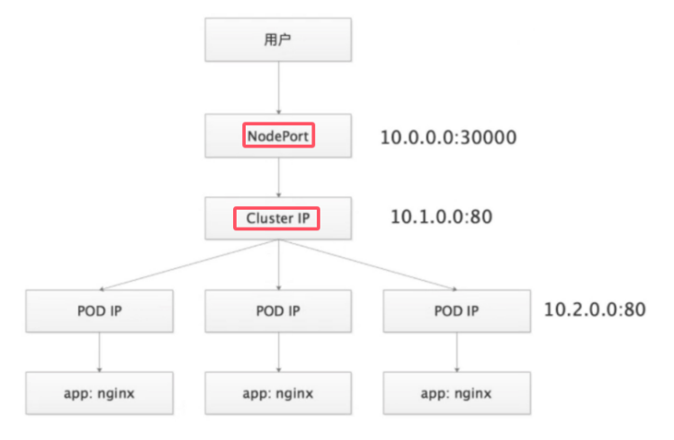 NodePort:宿主机端口映射ClusterIP端口对外提供服务