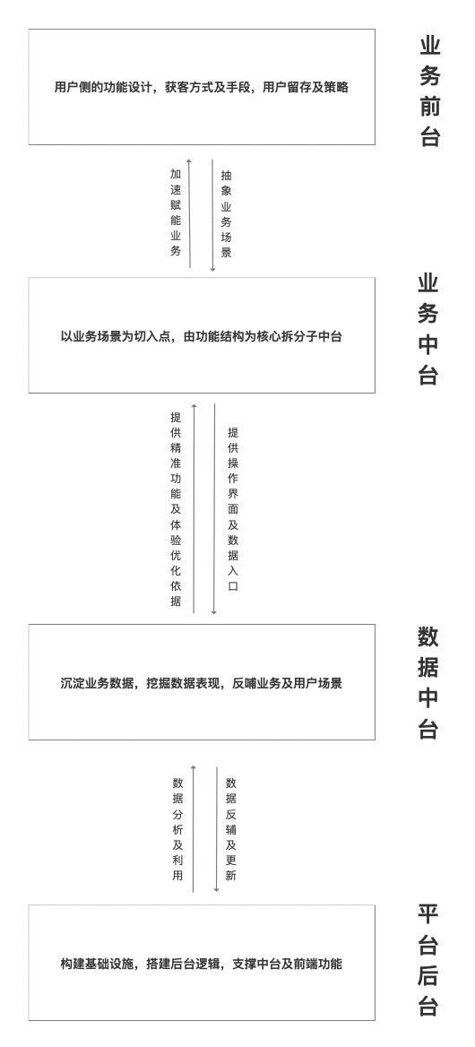 平台产品通常分为四阶层:业务前台-业务中台-数据中台-平台后台。