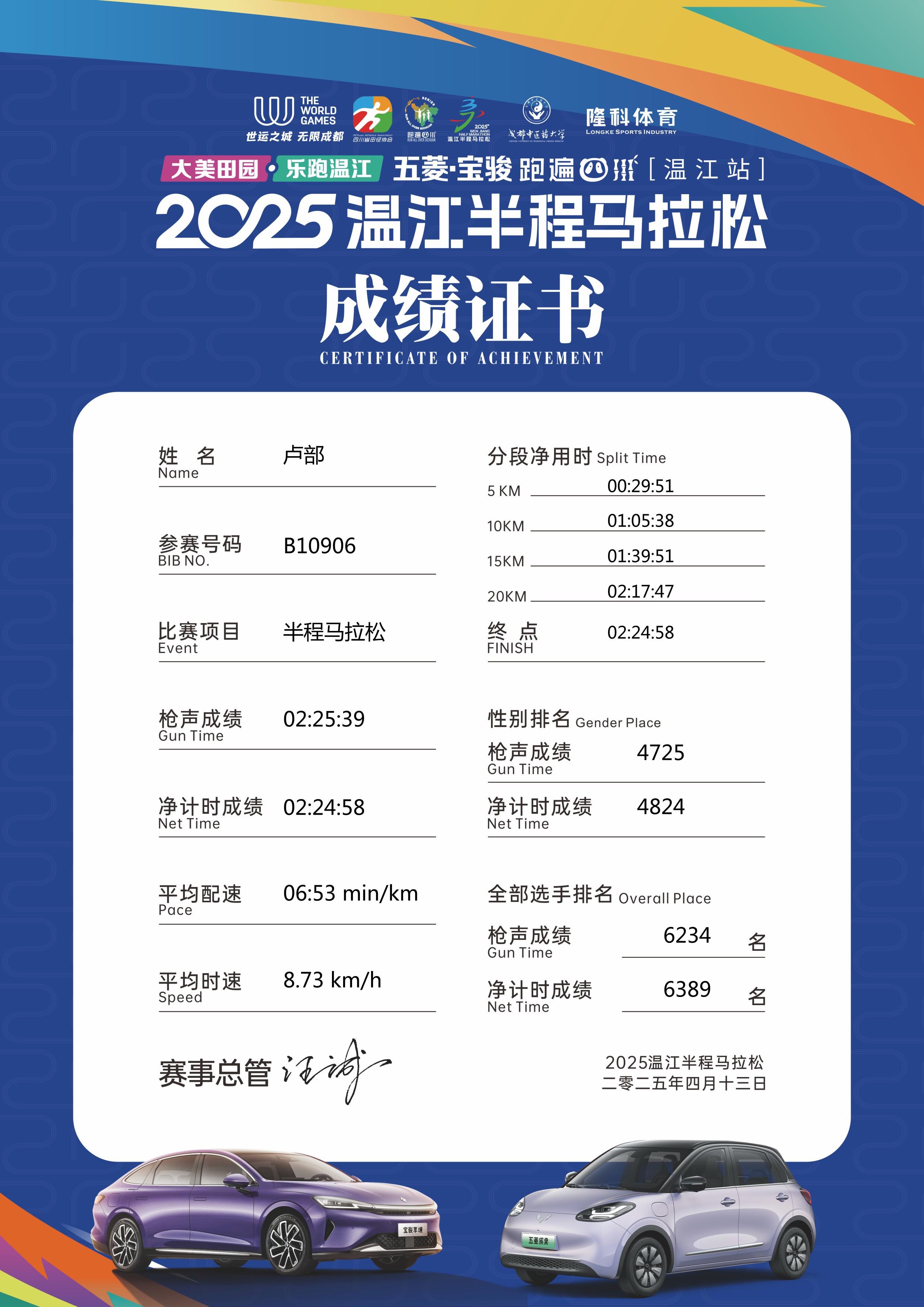PS:记录自己一次跑马的成绩,