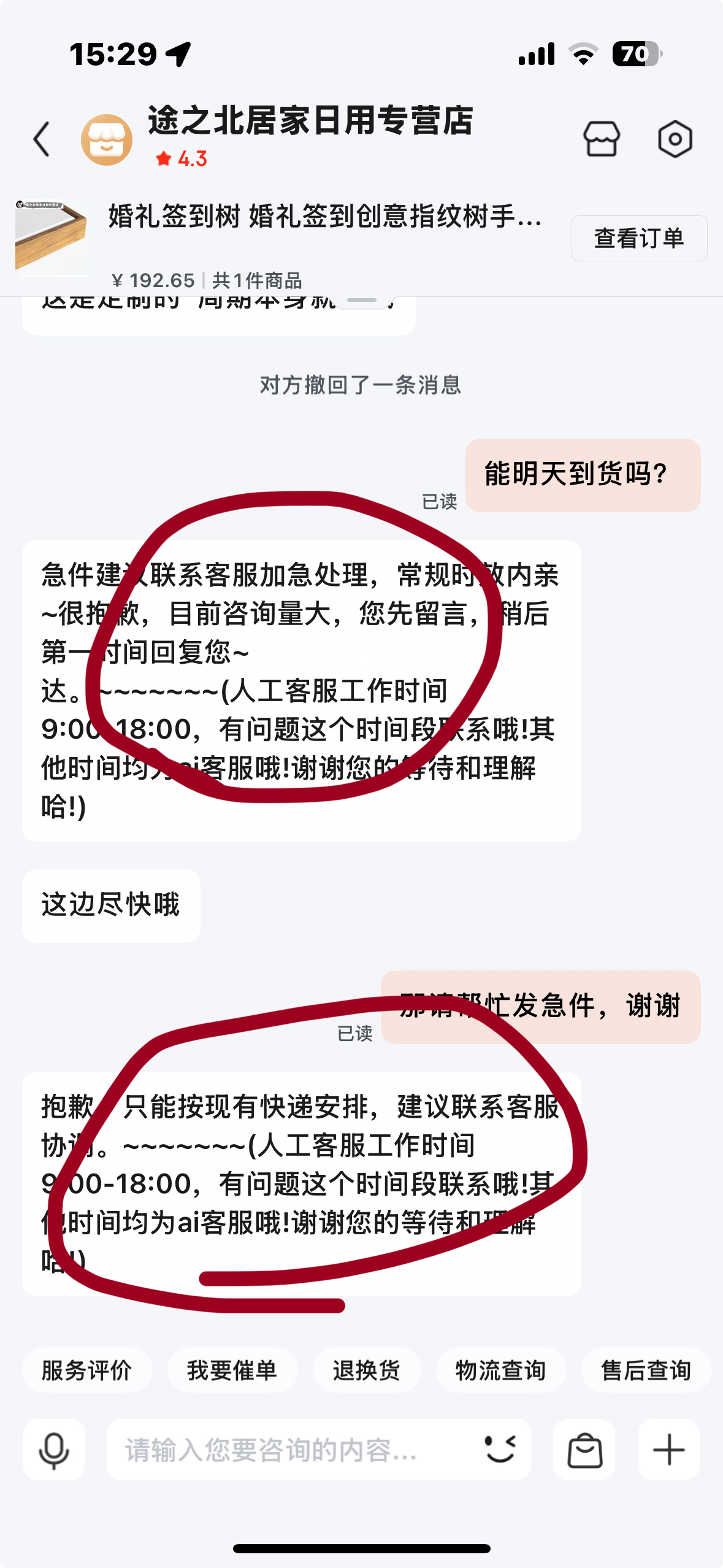 记一次京东购物后被商家晚发货还一直说是定制就是要晚,联系他们客户还是机器人,真气。