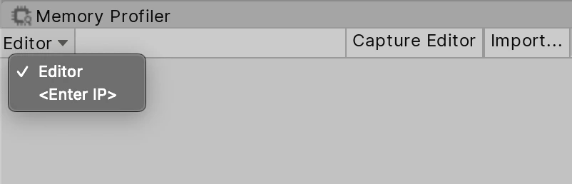 1.必须先选择一个目标,然后才能捕获内存快照。 默认情况下,Unity编辑器是目标。