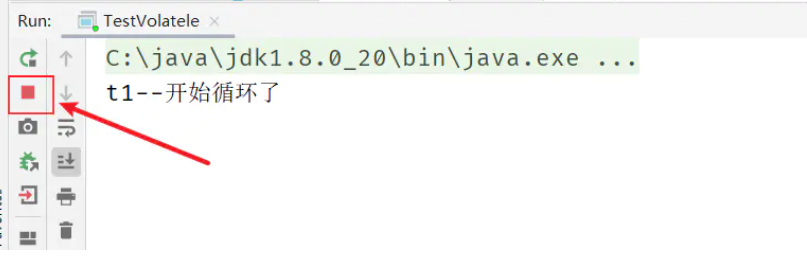 这个例子很简单,t1线程会一直监听isOk字段,t2线程负责修改isOk字段,正常情况下,当t2把isOk改为false时,t1应该会退出while循环,运行代码来验证一下结果。