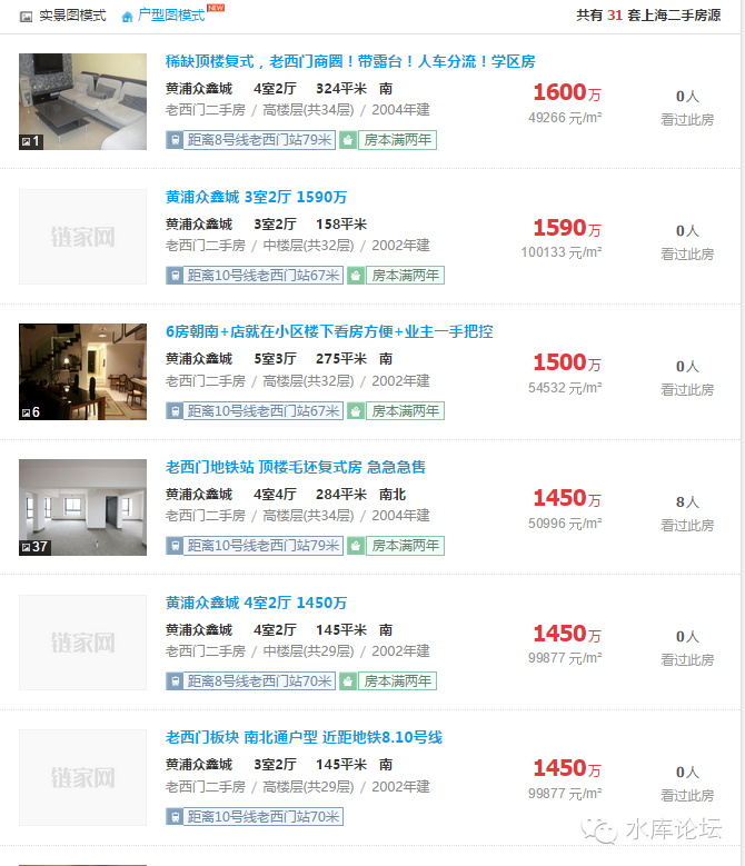 德佑在线上显示,黄浦众鑫城一共有34套房源。而且单价非常之低。